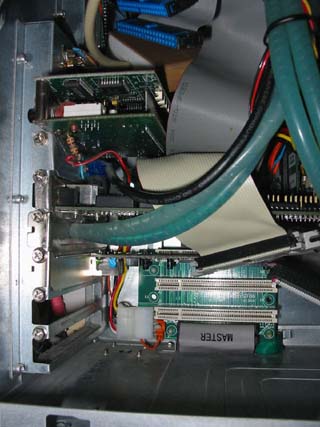 So the other part of the CTPCI is a board connected with two 80 wires ribbon cables with 4 PCI slots (one for graphical card and 3 others for what people will be able to do & develop). The 80 wires ribbon cables are simply some IDE cables. You can see a photo of the (big - 62 cms high) tower of Didier Mequignon with the Sapphire baord and an USB board, both waiting for the CTCPI... 3 PCI brackets are availables here... You can imagine the PCI slots card will be fixed with screws on some holes that have to be drilled...