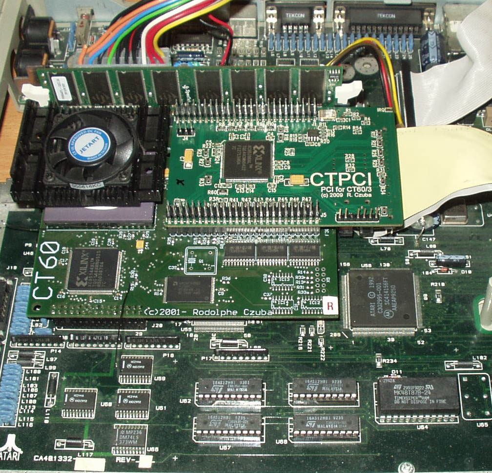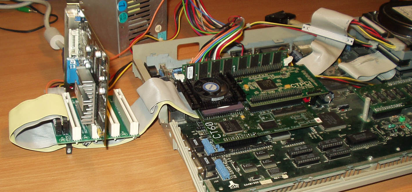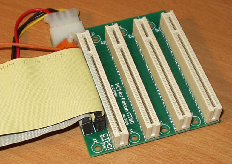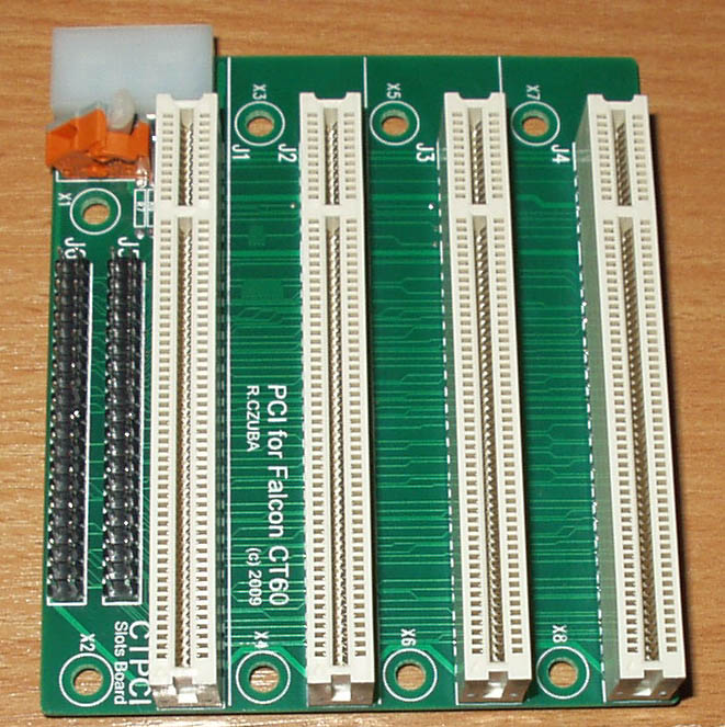 The CTPCI brings you at last the PCI connectors to your Falcon CT60/63 to use the graphical cards RADEON 7000/7500/9200, and some other cards like Ethernet, USB, S-ATA, Audio, etc...
