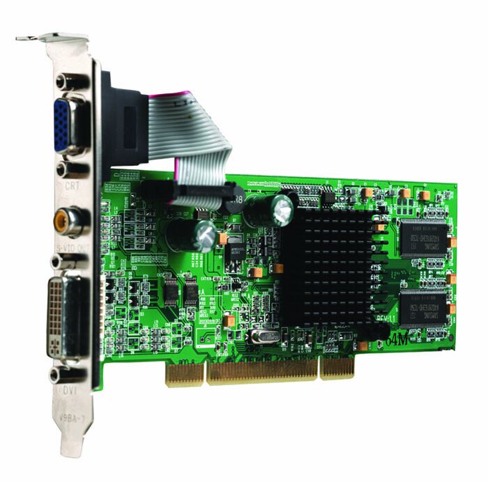 - Easy to find.There are 2 models of RADEON 7xxx chips (7000 & 7500) and several manufacturers with several models, some with nice features like DVI output, Dual Monitor Display Output, TV Tuner with Audio & S/P DIF outputs, Audio/Video inputs... Some models can be PCI or AGP (be carefull when ordering !).